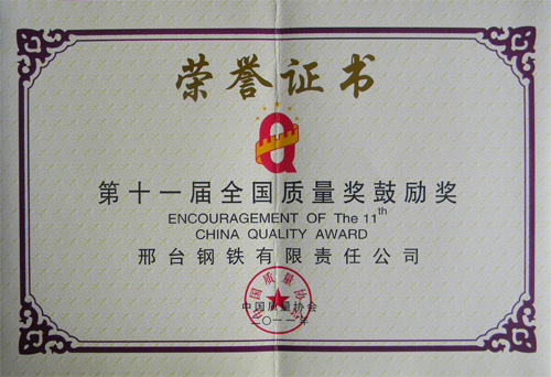 Xingtai Steel was awarded the 11th National Quality Encouragement Award.