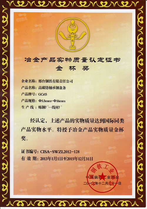高碳鉻軸承鋼盤條GCr15φ5.5~16mm獲冶金產(chǎn)品實(shí)物質(zhì)量金杯獎(jiǎng)