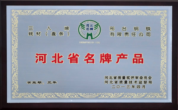 三人牌線材(盤條)被評為2012年河北省名牌產(chǎn)品