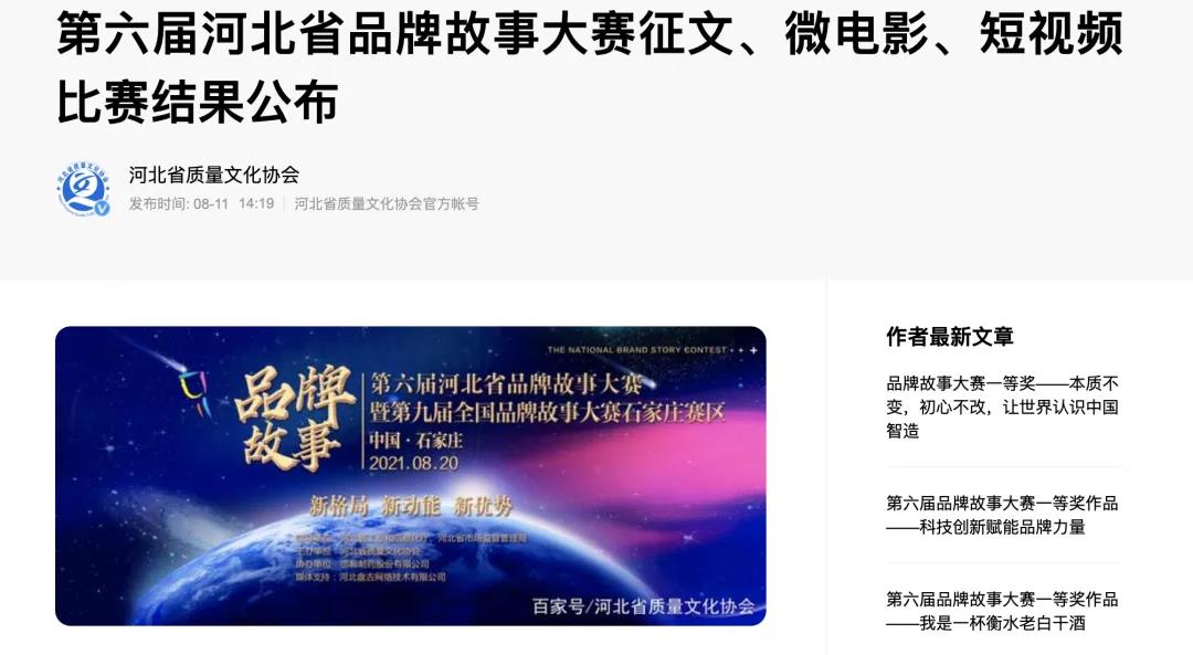 日前,從河北省質(zhì)量文化協(xié)會官網(wǎng)獲悉:邢臺鋼鐵有限責(zé)任公司所報送的5件參賽作品,在省質(zhì)量文化協(xié)會主辦、邯鄲制藥股份有限公司和河北盤古網(wǎng)絡(luò)技術(shù)有限公司協(xié)辦的第六屆河北省品牌故事大賽暨第九屆全國品牌故事大賽(石家莊賽區(qū))中,均取得令人滿意的成績:其中,《匠心精品,奔跑在強國的大道上》獲大賽征文一等獎,《…