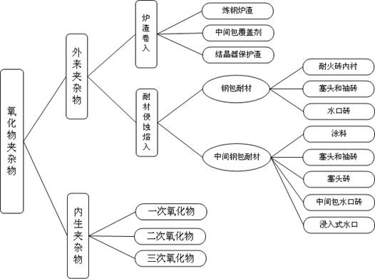 而外來夾雜主要是在鋼的熔煉、出鋼和澆鑄過程中,鋼液同耐火材料和爐渣相接觸,爐渣被卷入鋼液中(特別是出鋼的時候),耐火材料在高溫收到?jīng)_蝕,它的顆?;烊脘撘褐?,這些情況都難以避免?;烊脘撘褐械哪突鸩牧虾蜖t渣顆粒通過與鋼液起化學(xué)反應(yīng)不斷在成分和結(jié)構(gòu)上發(fā)生變化。這些顆粒,不論是剛剛被機(jī)械地帶入鋼液中的,還是經(jīng)歷了相當(dāng)變化的,一旦被滯留到鑄件中,就變成了鋼中的夾雜物,這些就叫外來夾雜物。外來一般來說尺寸較大,外形不規(guī)則,結(jié)構(gòu)復(fù)雜,只是偶然在這里或者那里出現(xiàn)。夾雜物的來源和分類下圖。