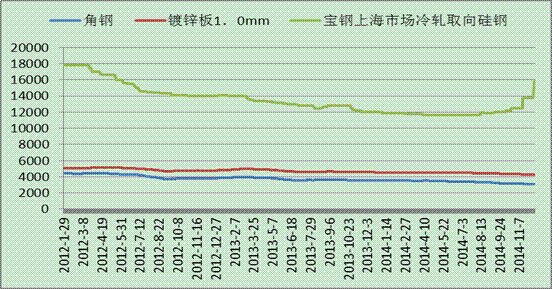 圖1:角鋼、鍍鋅板、硅鋼價格走勢