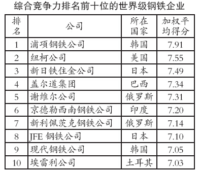 浦項(xiàng)保持全球最佳 中國企業(yè)大而不強(qiáng)