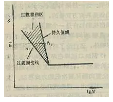 所謂超載損傷是指材料在高于疲勞極限的載荷下運(yùn)行達(dá)到一定周次后,將造成材料疲勞極限的下降。超載越高,造成損傷所需的周次越短,如圖1所示。