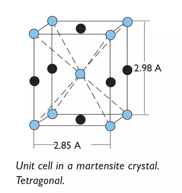 如果鋼在硬化過(guò)程中足夠快速地淬火,則碳原子沒(méi)有時(shí)間自己重新定位以允許鐵素體從奧氏體中轉(zhuǎn)變,例如在退火中。相反,它們被固定在某個(gè)位置上,使它們真正沒(méi)有足夠空間被容納,結(jié)果是導(dǎo)致更高的微應(yīng)力促使硬度增加。