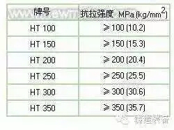 表2為灰鑄鐵的新的國家標準。該標準是以灰鑄鐵的抗拉強度作為分級依據的。由于灰鑄鐵對冷卻速率的敏感性(壁厚效應),同一種牌號鑄鐵在不同鑄件壁厚條件下的實際強度有很大的差別(薄壁與厚壁之間在強度上的差別達50-80MPa)。