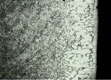鋼表面脫碳層,白色為鐵素體,碳在晶界擴(kuò)散速度更快晶界脫碳更為顯著