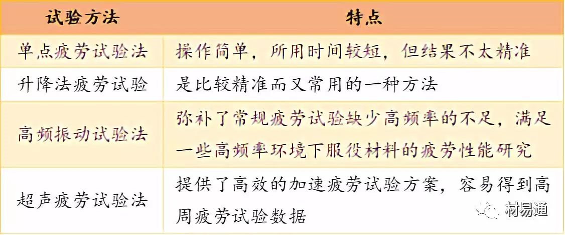 常用試驗方法及其特點