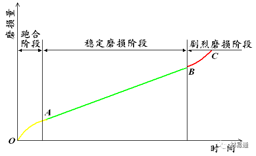 穩(wěn)定磨損階段:斜率就是磨損速率,唯一穩(wěn)定值;大多數(shù)機(jī)件在穩(wěn)定磨損階段(AB段)服役;