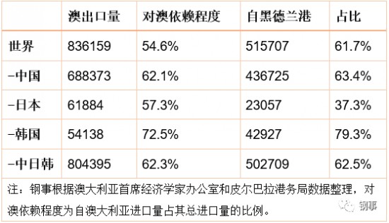 2019年黑德蘭港及澳大利亞鐵礦石出口中日韓數據