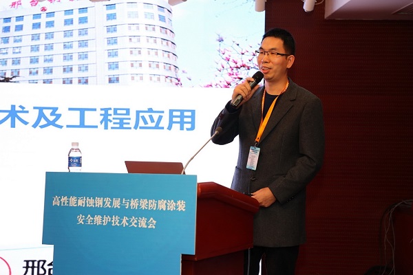 在技術(shù)交流環(huán)節(jié),本次會議共安排了15場次的專家報告。包括中國鋼研科技集團(tuán)有限公司、邢臺鋼鐵有限責(zé)任公司、首鋼集團(tuán)有限公司、馬鞍山鋼鐵股份有限公司、中交一公路勘察設(shè)計研究院有限公司、蘇交科集團(tuán)股份有限公司、上海市城市建設(shè)設(shè)計研究院總院、武漢重型工程股份有限公司、山東電工電氣有限公司、中鐵寶橋集團(tuán)有限公司、中鐵山橋集團(tuán)有限公司、固瑞克流體設(shè)備(上海)有限公司、武漢雙虎涂料有限公司、河南青山環(huán)??萍加邢薰?、廣州集泰化工股份有限公司等技術(shù)專家在會上做了精彩的技術(shù)分享。報告內(nèi)容題材涉及廣泛、內(nèi)容充實,既有正向設(shè)計、行業(yè)應(yīng)用、案例分析,又有新技術(shù)、行業(yè)標(biāo)準(zhǔn)、相關(guān)政策深度解讀。學(xué)術(shù)分享、學(xué)習(xí)交流氛圍濃厚,與會代表反響熱烈。其中,邢鋼首席技術(shù)專家 技術(shù)中心線材應(yīng)用研究所所長阮士朋作了《高強(qiáng)韌耐候螺栓用鋼關(guān)鍵技術(shù)及工程應(yīng)用》精彩主題演講,引起了與會專家、學(xué)者的普遍關(guān)注。
