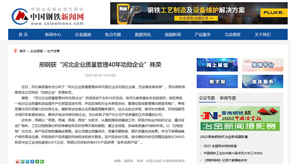 邢鋼獲“河北企業(yè)質量管理40年功勛企業(yè)”殊榮