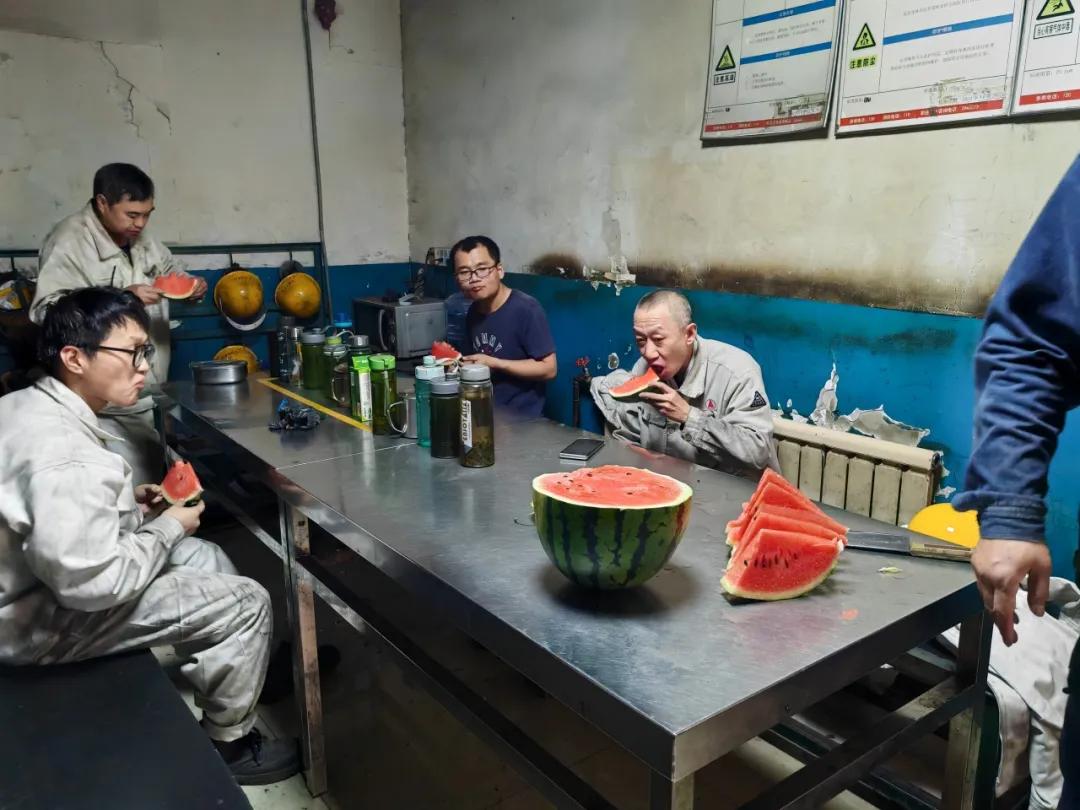 “天氣炎熱,大家辛苦了”,在爐前,侯副總親自把西瓜送到員工手里,并送上節(jié)日的祝福“端午安康!”希望大家在工作中注意做好防暑降溫,避免中暑,工作中合理分配體力,既要保證西場(chǎng)主溝澆筑過程安全,又要保證東場(chǎng)單場(chǎng)出鐵過程安全。在二燒混合機(jī)檢修現(xiàn)場(chǎng),侯總了解檢修進(jìn)度,叮囑維修、燒結(jié)車間主任,要注意檢修過程人員安全,保證檢修質(zhì)量,為二燒設(shè)備穩(wěn)定運(yùn)行奠定基礎(chǔ)。