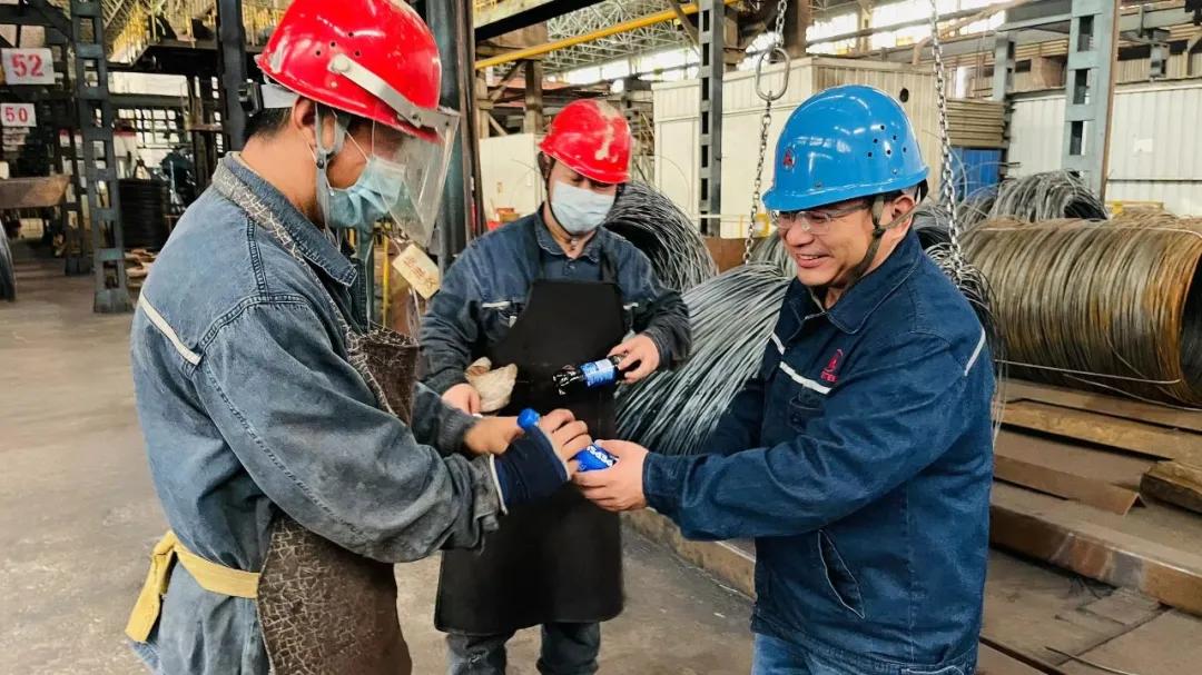 入夏以來,持續(xù)出現(xiàn)高溫天氣,炎炎夏日,揮汗如雨。為保障一線員工的身體健康,近日,由線材廠廠長(zhǎng)孔令波帶隊(duì)到生產(chǎn)線高溫崗位為員工送清涼,為堅(jiān)守在生產(chǎn)一線員工送去了飲料、西瓜等防暑降溫食品,并對(duì)員工工作、身體情況進(jìn)行慰問。