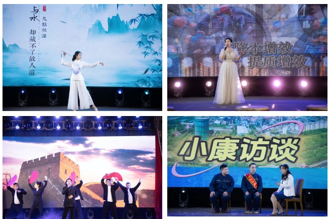 聯(lián)歡會在煉鐵廠震撼人心的《旗鼓飛揚》的鼓聲中拉開帷幕,煉鋼廠、線材廠、新翔公司等二級單位、子公司錄制的《邢鋼一線員工賀新春》視頻為聯(lián)歡會烘托出濃厚的節(jié)日氣氛。碳資產(chǎn)管理部蘆麗華、線材廠張嬌的一首《紅彤彤的春天》讓觀眾如沐春風(fēng),銷售公司田芳、張可等的動感現(xiàn)代舞《奔跑吧,兄弟!》又讓觀眾切身感受到市場營銷人員的拼搏、奉獻。焦化廠申學(xué)軍、閆俊萍等的《難忘的焦爐情懷》,以情境小品的形式,再現(xiàn)2#焦爐安全停爐的場景,重溫焦化人站好最后一班崗的敬業(yè)情懷;線材廠魏東的《步步高》,唱出了邢鋼人的激情與豪情。技術(shù)中心蔡永賓等的詩朗誦《攜手邢鋼,追夢邢鋼》,以新一代邢鋼人的視角,張揚青春,澎湃激情;煉鋼廠張康健、甄建軍的《想把我唱給你聽》、資金部趙嘉薏的舞蹈《青花瓷》、能源動力部董巖的《匆匆歲月細細地過》、新翔公司郭文杰、景雙輝等的歌伴舞《雪龍吟》展現(xiàn)了鋼鐵人的別樣情懷。晚會中的兩個小品——煉鐵廠的《考察》、煉鋼廠的《小康訪談》,在輕松詼諧的氣氛中,展示了廣大員工對新邢鋼美好未來的信心。邢鋼搬遷項目指揮部與綜合辦公室、線材廠帶來的詩朗誦《希冀,奮進,筑夢新邢鋼》,回顧了邢鋼搬遷項目的建設(shè)歷程,激勵全體員工以更加昂揚的斗志、更加飽滿的激情,投身到各自的崗位上,讓新邢鋼的旗幟,永遠在鋼鐵行業(yè)的巔峰飄揚!