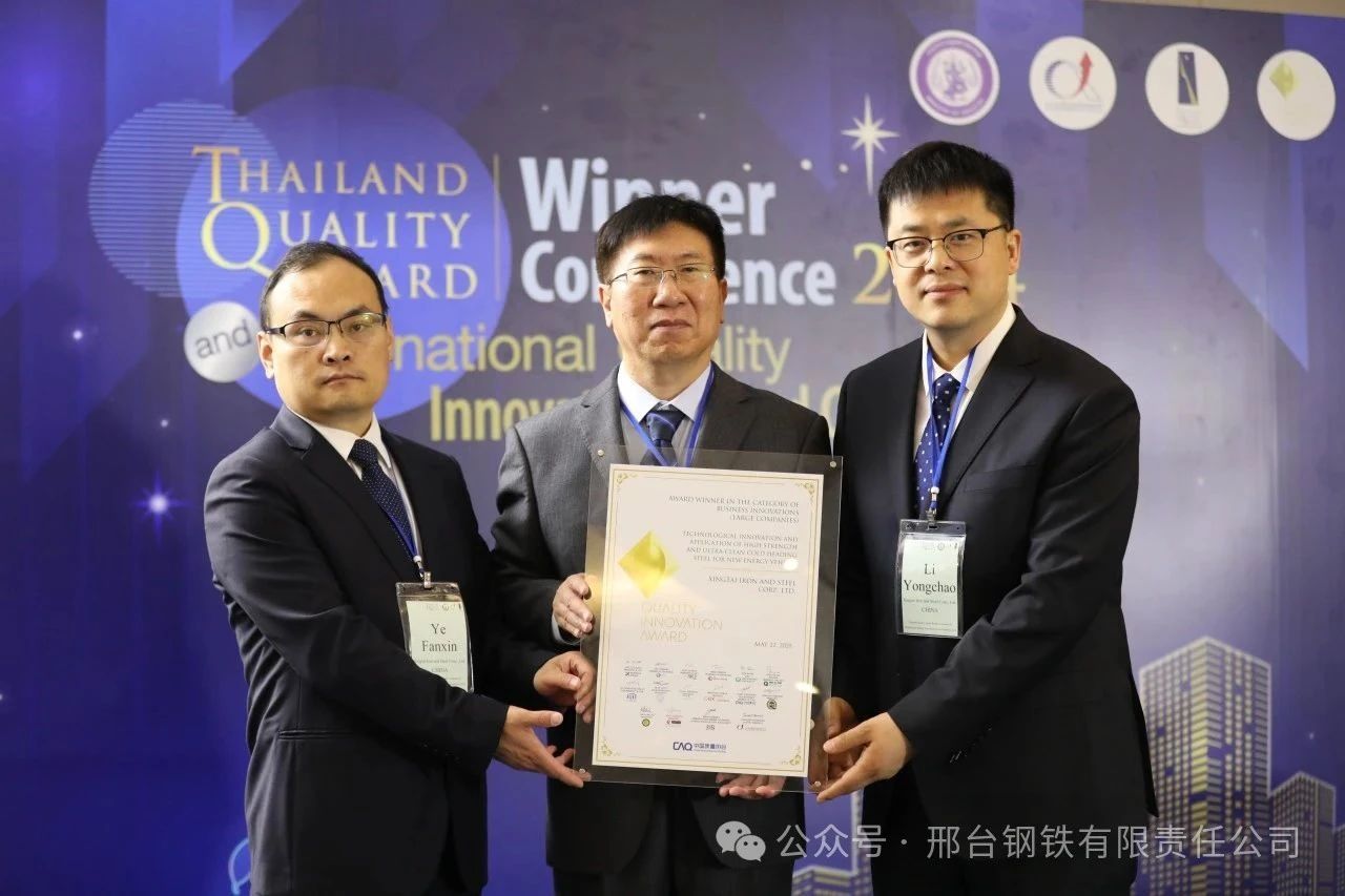 The 2024 International Quality Innovation Competition Release Conference and Award Ceremony was successfully held in Bangkok, Thailand on May 22nd and 23rd, 2025. On the international stage, Xingtai Iron and Steel Company made a remarkable achievement for the industry: the company's R&D team won the first prize for the project "Innovative Technology and Application of High-Strength Ultra-Clean Cold-Forming Steel for New Energy Vehicles", which was the first international award for Xingtai Iron and Steel and also the first international award for the steel industry since the establishment of the International Quality Innovation Competition.
