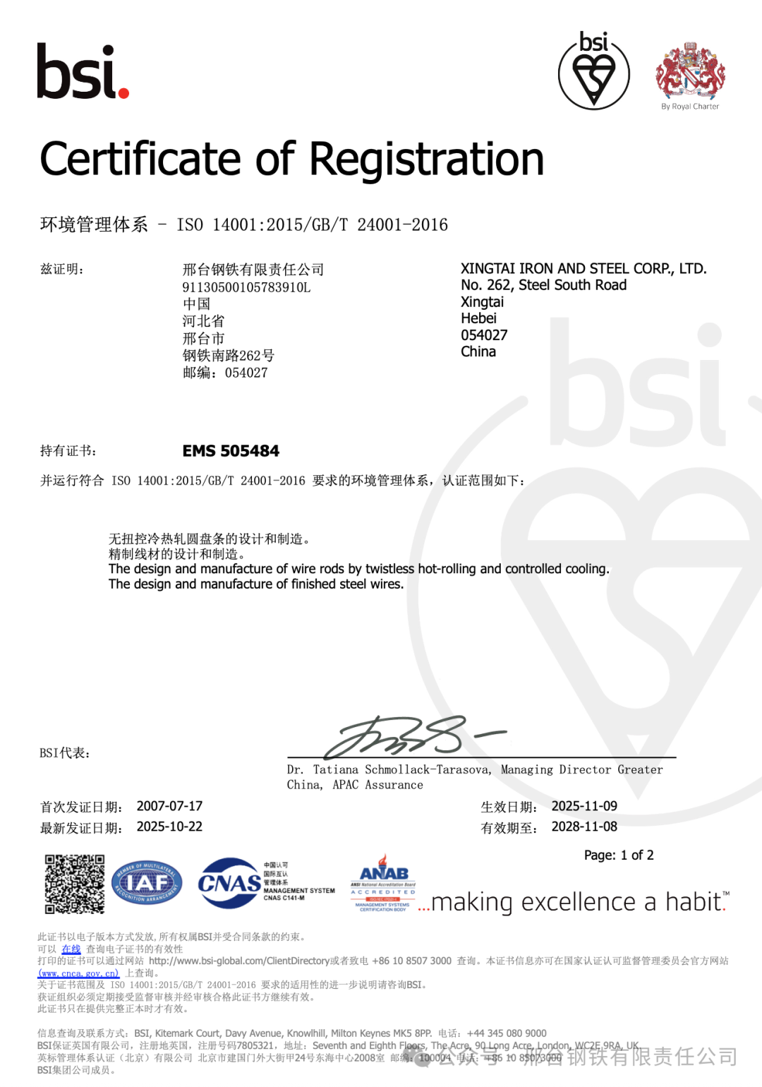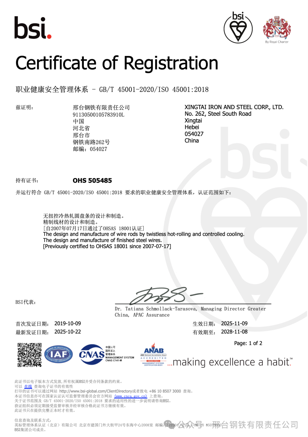 近日,邢臺鋼鐵有限責(zé)任公司(簡稱“邢鋼”)順利通過英國標(biāo)準(zhǔn)協(xié)會(BSI)對其職業(yè)健康安全管理體系與環(huán)境管理體系的再認(rèn)證審核,取得新版證書。該公司自2007年首次通過該體系認(rèn)證以來,已連續(xù)十八年保持體系持續(xù)有效運(yùn)行,體現(xiàn)出在安全與環(huán)境管理方面長期穩(wěn)定的合規(guī)能力和管理韌性。
